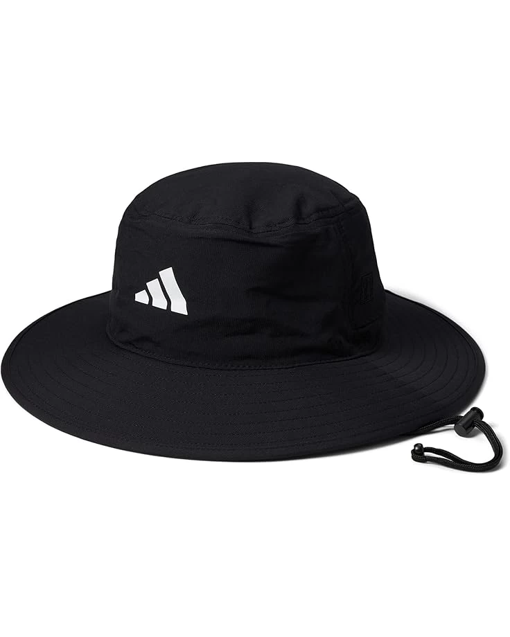 The primary materials that compose this product contain a minimum of 20 percent recycled content.SKU: #9819511Stay protected from the harsh rays by wearing the adidas® Golf Wide Brim Hat. AEROREADY offers moisture-absorbing properties to help keep you dry.UV 50+ sun protection. Wide, all-around brim with stitching detail. Adjustable drawcord with toggle closure. adidas® Badge of Sport Golf logo on the side. Brand logo on the front. Perforated detail on the back. Main: 100% recycled polyester;