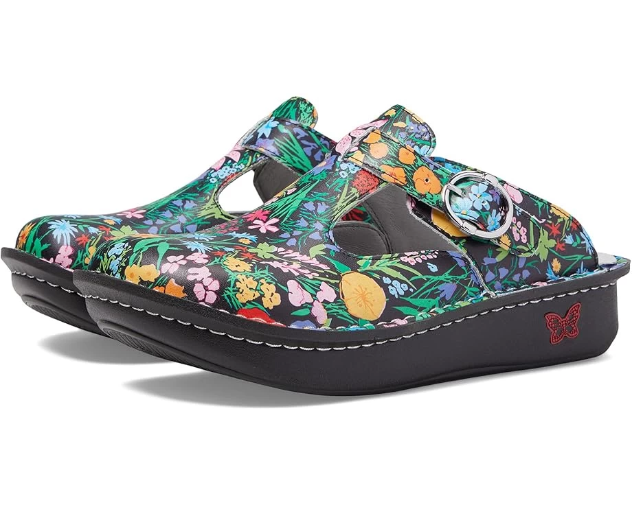 The clog that started it all, the Alegria Classic from Alegria® is sure to suit all of your casual or work needs.SKU: #7814541This style is perfect for those in the nursing, hospitality, and other occupational fields because of its ability to provide unmatched comfort and support.Comes in a variety of rich leather or smooth patent uppers in a vast combination of prints.Fully adjustable instep buckle adds a hint of flair and allows you to cinch up to a custom fit.All leather interior offers moisture-wicking control to help keep your feet feeling fresh and dry.Combination latex-and-cork footbed is designed to form to the foot and can be removed for custom orthotics.Rocker outsole also propels you through the gait cycle, rocking you from heel to toe in a natural motion, resulting in less tired feet and body at the end of the day.Slip-resistant PU outsole is engineered to reduce heel and central metatarsal pressure and the bottom is flat to increase stability.Imported.Product measurements were taken using size EU 38 (US Women’s 8-8.5), width Regular. Please note that measurements may vary by size.Measurements: