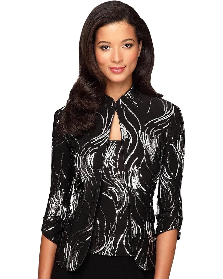 Alex Evenings Women’s Mandarin Neck Twinset Tank Top And Jacket Petite Regular