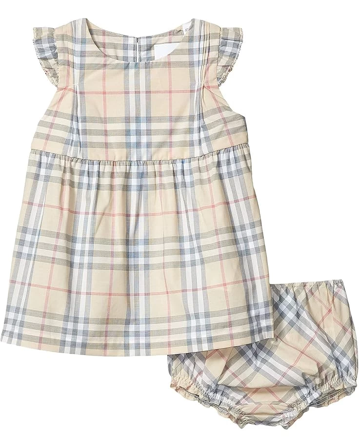 Signature checked Burberry Kids® Reanne Dress with ruffled cap sleeves and key-hole button closure at the back.SKU: #9372866Straight hem.Matching bloomers with elastic waist.100% cotton.Machine wash cold, line dry.Imported.Product measurements were taken using size 12 Months. Please note that measurements may vary by size.Measurements:
