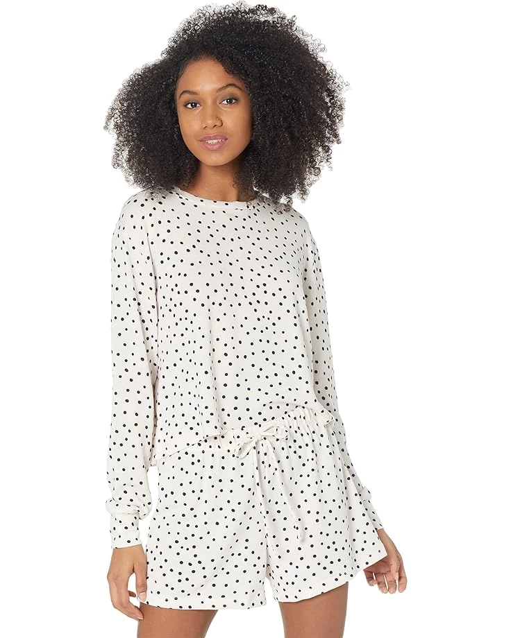 The Catherine Malandrino Pullover & Short Lounge Set has a cozy fit that will help you relax in style.SKU: #9552018Lightweight and breathable two-piece lounge set includes a long sleeve shirt and relaxed fit shorts.Long sleeve shirt features a crew neck and straight hemline.Pull-on style lounge shorts offer a covered elasticized waistband with adjustable drawstring tie.All over polka dot print.95% polyester, 5% elastane.Machine wash, tumble dry.Imported.Product measurements were taken using size SM. Please note that measurements may vary by size.Measurements: