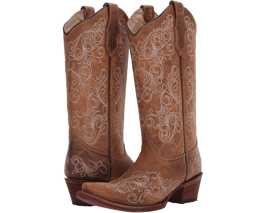 These Corral™ L5418 cowgirl boots have a rich, handcrafted leather construction and intricate Western embroidery, making this a truly modern cowgirl style. SKU: #9303651Pull-loops for easy on and off. Snip toe with single-stitched welt. Smooth leather lining for a comfortable next-to-skin feel. Cushioned leather insole provides added comfort for all-day wear.Traditional Western heel.Leather outsole with rubber heel tab for long-lasting wear resistance. Imported.Product measurements were taken using size 8, width B – Medium. Please note that measurements may vary by size.Measurements: