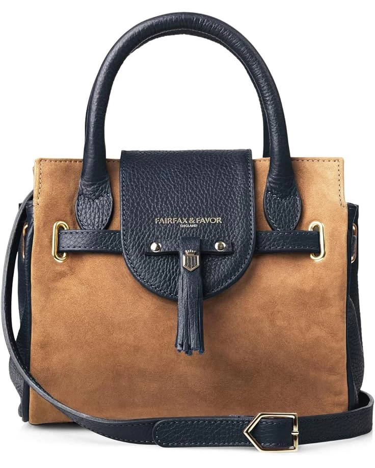 Style your fashionable look and carry your essentials inside the Fairfax and Favor® Mini Windsor Handbag. SKU: #9792695Genuine leather construction.Zippered interior pocket.One interior compartment.Adjustable shoulder strap for easy carrying.Signature brand detailing on the flap closure with tassel.Handle on top.Lining: microfiber.Imported.Measurements: