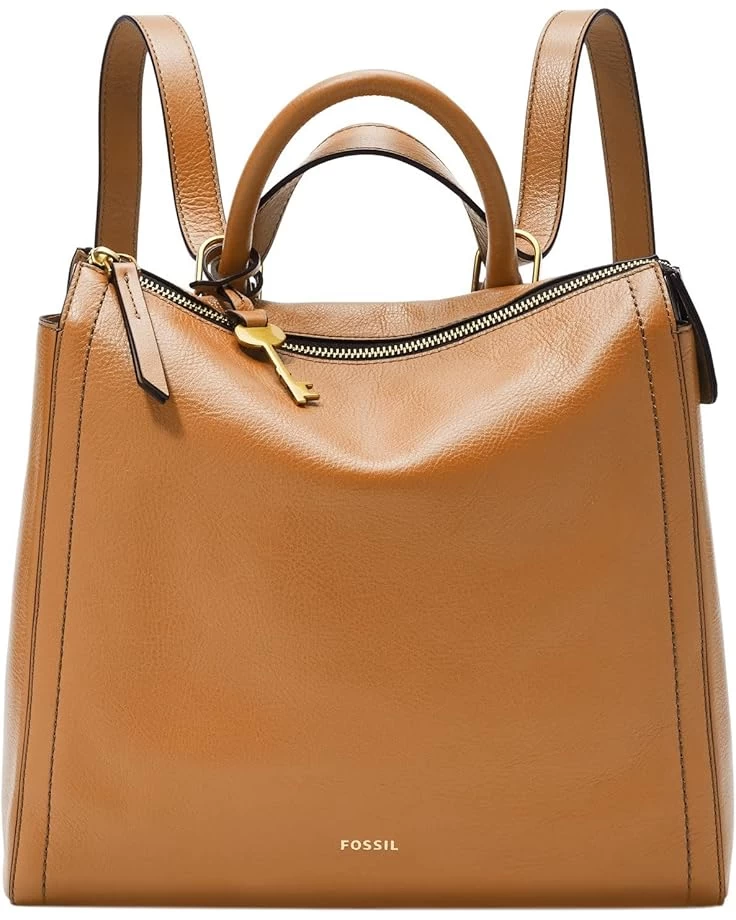 Take what you need in the fashionable yet professional Fossil® Parker Small Backpack.SKU: #9532139Full leather upper offers a top zip closure, carrying handle, and adjustable shoulder straps with gold tone hardware.Textile lined main compartment features one zipper pocket and one slip pocket.Imported.Please note, the hardware color and interior lining may differ from the color shown in the photo.Measurements: