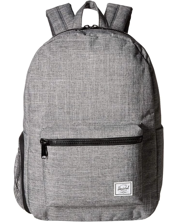 Perfect for on-the-go parents, the timeless Herschel™ Settlement Sprout Diaper Bag features a highly functional design for your busy schedule! SKU: #9062299Stylish backpack-style diaper bag in a durable polyester features versatile storage. Integrated storage for diapers, wipes, and toys.Optional hook-and-loop fastened changing mat storage divider.Folding easy-wipe changing mat with reinforced mesh wing pockets.External zippered side-access to changing mat.Front storage pocket.Exposed plastic zippers.Water bottle pocket and mesh accessory sleeve.Classic woven label.Signature striped fabric liner.100% polyester. Volume: 26LImported.Measurements: