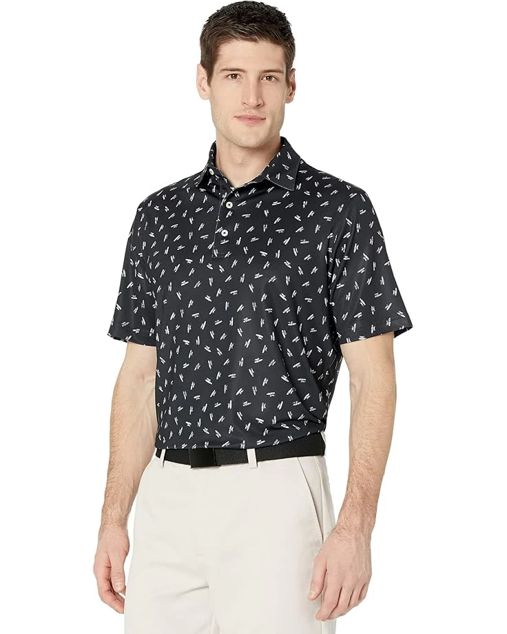 A surfer print rides on the cool Johnnie-Oâ„¢ Exeter polo.SKU: #9492142UPF 50 stretch polyester jersey performance fabric wicks moisture from the skin.Spread collar and three-button placket.Side vents.Logo embroidered at back yoke.93% polyester, 7% spandex.Machine wash, tumble dry.Imported.Product measurements were taken using size LG. Please note that measurements may vary by size.Measurements: