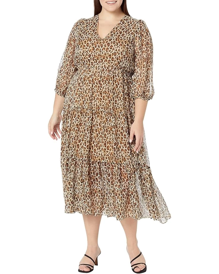 SKU: #9851244Midi-length dress in an A-line silhouette.V-neckline and three-fourth sheer sleeves. Tiered accent on the skirt. Leopard print detailing throughout. Pull-on construction. 100% silk.Dry-clean. Imported. Product measurements were taken using size SM (US 4-6). Please note that measurements may vary by size.Measurements: