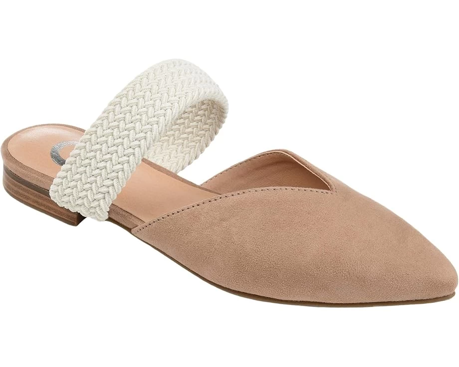 Journee Collection® Roxeene Mule features a pointed toe with a sweetheart styled vamp, available in vegan suede. Its braided strap provides a snug fitting accent piece.SKU: #9550030Closed, pointed toe.Braided strap.Padded footbed.Block heel.Fabric or faux leather upper.Synthetic footbed and outsole.Imported.