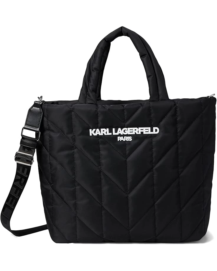 Bring all your essentials with you no matter where you’re headed with the KARL LAGERFELD Paris™ Voyage Tote. SKU: #9806730Two medium handles. Single removeable, adjustable shoulder strap. Logo hardware on front. Quilted design all over. Zipper closure. Logo patch on inside. Branded patterning printed on lining. Single interior zipper pocket. Single interior slip pocket. Made completely with man-made materials. Imported. Measurements:
