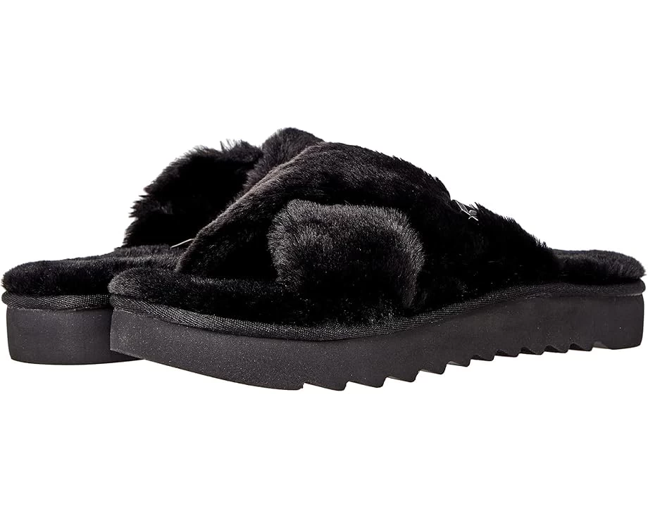 Keep your feet comfy cute in the Koolaburra by UGG® Fuzz-It sandal. With faux fur lining and straps, you will look and feel great at home or out and about. SKU: #9529354Style number: 194715832817.Slip on style in a round, open toe silhouette and crisscross straps.KoolaKomfort Foam insole.Textile construction throughout with textile and synthetic outsole. Faux fur is 100% polyester. Imported. Product measurements were taken using size 8, width M. Please note that measurements may vary by size.Weight of footwear is based on a single item, not a pair.Measurements: