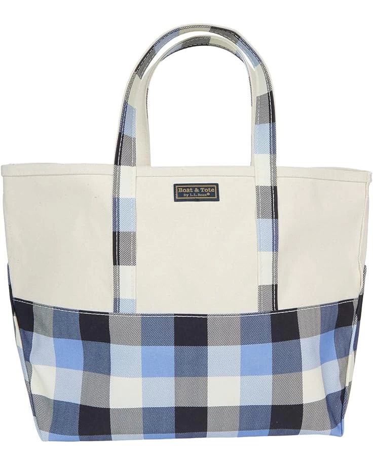 L.L.Bean™ High Bottom Boat and Tote is a capable carryall with reinforced handles and a rugged double-layer bottom. Form meets function, showcasing a supportive plaid canvas layer.SKU: #9867015Heavy-duty 24 oz. canvas with reinforced double-layer base.Handles tested to hold up to 500 pounds.Overlapped seams are double-stitched with nylon for extra durability.Body and lining are constructed of cotton.Made in the U.S.A.Measurements: