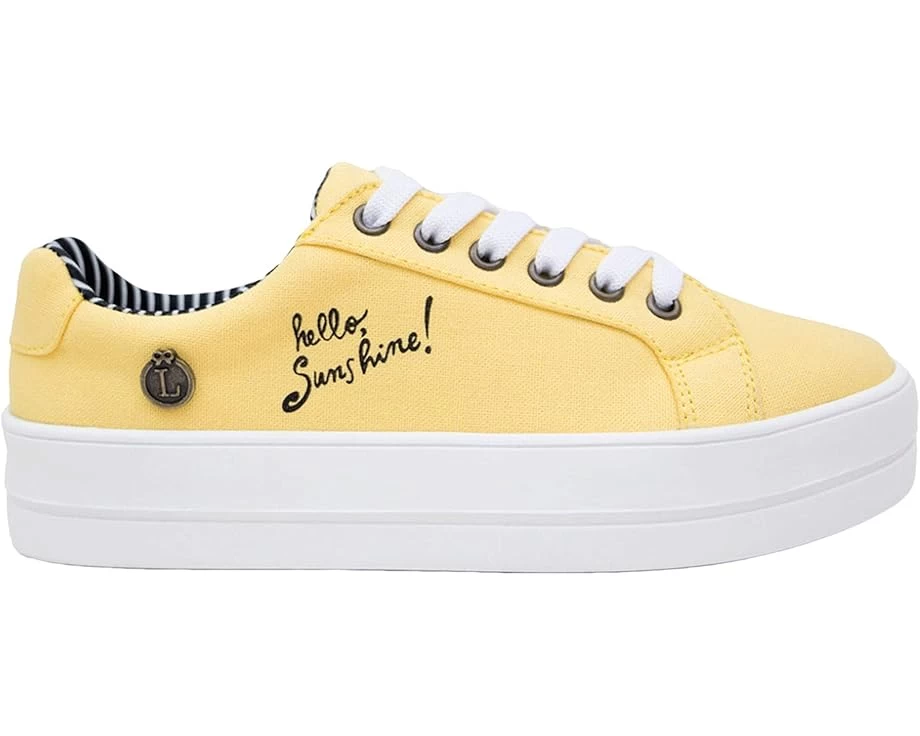 Verified vegan construction.SKU: #9504339Have a little sunshine on your feet all day. The Loly In The Sky Salma has “hello Sunshine” scripted on the side with a padded insole for ultimate comfort, these will be worn on a daily basis with your favorite outifits.Padded insole.Slip-on style.Stacked bottom design.Cotton upper;