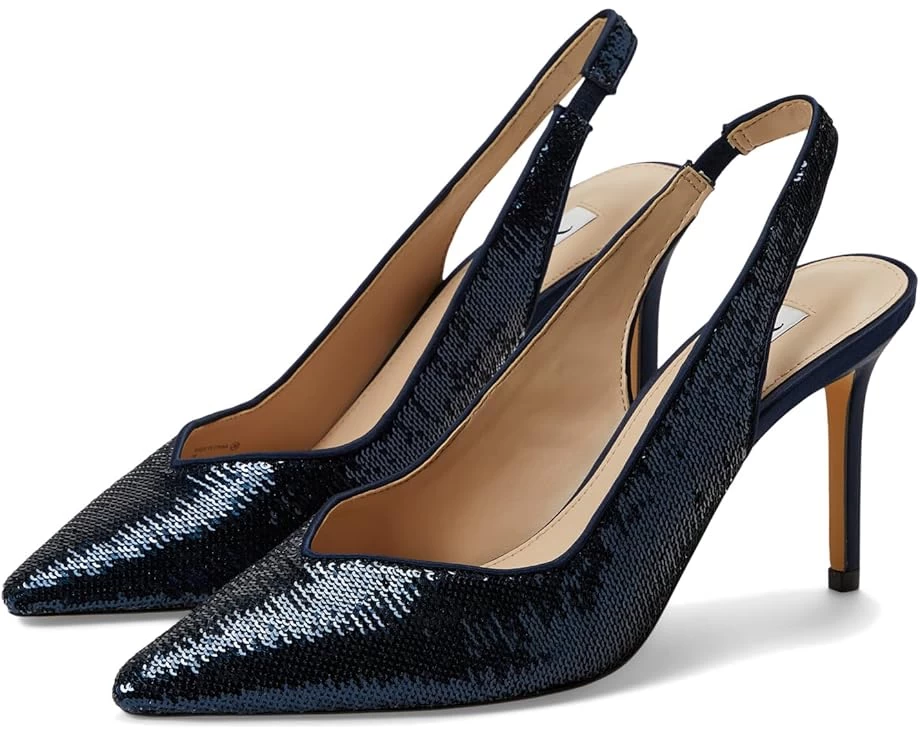 The Nina™ Nayla pumps are all about glamor and class that will sure to stand you out in the crowd. SKU: #9806603Textile upper with sequin embellishments throughout. Leather lining and insole. Easy slip-on style with stretchable slingback strap for added support. Pointed toe silhouette. High stiletto heel. Durable leather outsole. Imported. Product measurements were taken using size 9, width M. Please note that measurements may vary by size.Measurements: