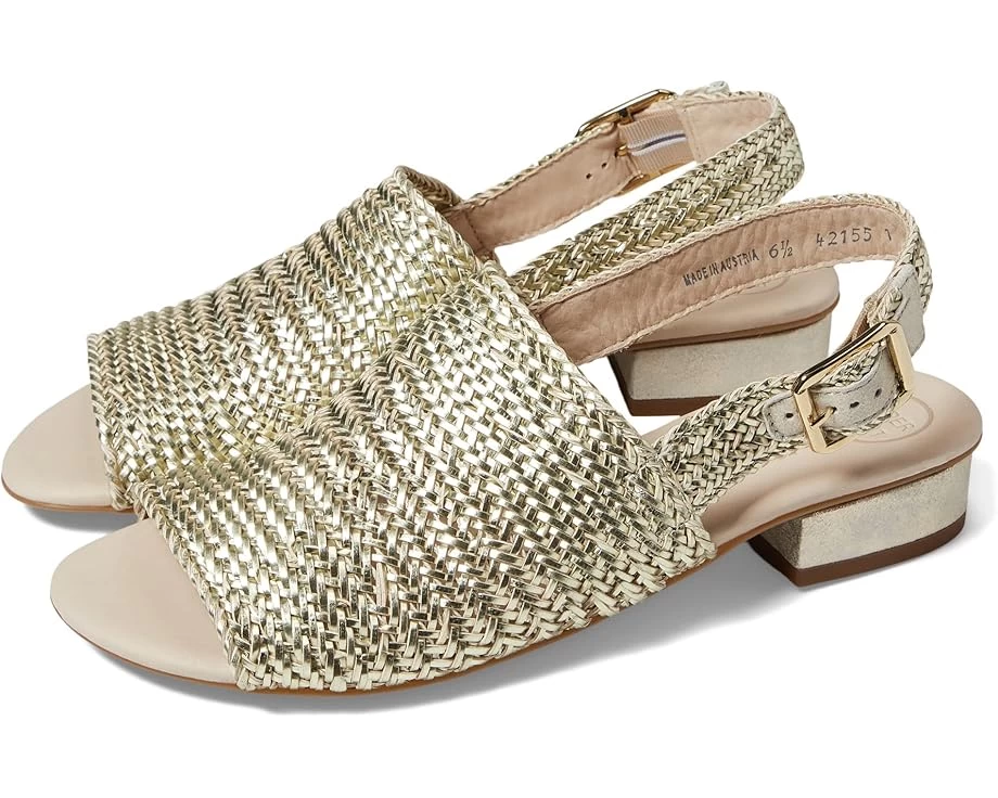 Bring on a boho-chic vibe to your casual style wearing the Paul Greenâ„¢ Helena Heeled Sandals.SKU: #9670079Woven leather upper.Man-made lining.Cushioned insole.Slide-on style with adjustable buckle on the slingback strap.Peep toe silhouette.Nubuck-wrapped block heel.Imported.Product measurements were taken using size AT 6.5 (US Women’s 9), width M. Please note that measurements may vary by size.Please Note: When you receive your shoes, the US size ordered will be printed on the box. The size printed on the shoe itself is its equivalent in Austrian sizing, which is 2.5 sizes smaller. Measurements: