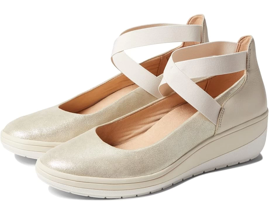 The VIONIC® Ellery is biomechanically designed to hug your arches and help support natural alignment of your body. SKU: #9565431Leather and textile upper.Textile lining and insole.VIONIC® Advanced Motion System (AMS) technology combines the podiatrist-designed orthotic with a flexible and cushioned outsole for all-day support during work, play, and everyday.Removable microfiber covered EVA footbed.Crisscross elastic straps and slip-on style.Round toe.Rubber outsole.Imported.Measurements:
