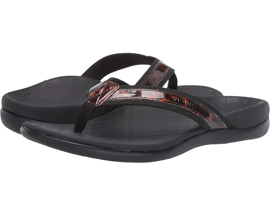 Brand advises ordering the nearest size down if you are a half size.SKU: #9224492The VIONIC® Tide Tortoise features great quality and fit with top-notch style!Received APMA Seal of Acceptance. Click here to view Seal. Tortoise-colored synthetic upper with stylish textile trim.Soft woven toe post and foam-lined strap ensure a secure, comfortable fit for all-day wear.Lightweight, flexible medium-density EVA midsole absorbs shock to reduce stress on the feet, ankles and knees. Durable TPR outsole with wave-patterned tread provides traction to maintain your confident stride. Imported.Product measurements were taken using size 8, width M. Please note that measurements may vary by size.Measurements: